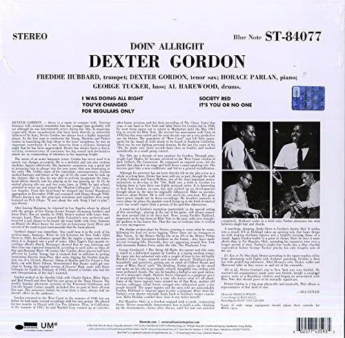 Doin’ Allright é um álbum do saxofonista de jazz Dexter Gordon, lançado em 1961 pela Blue Note Records. Este álbum marca um momento significativo na carreira de Gordon, pois foi seu retorno ao estúdio após um hiato devido a problemas pessoais e profissionais. Ele é amplamente considerado um dos melhores trabalhos de Gordon e um exemplo brilhante de seu estilo de hard bop.